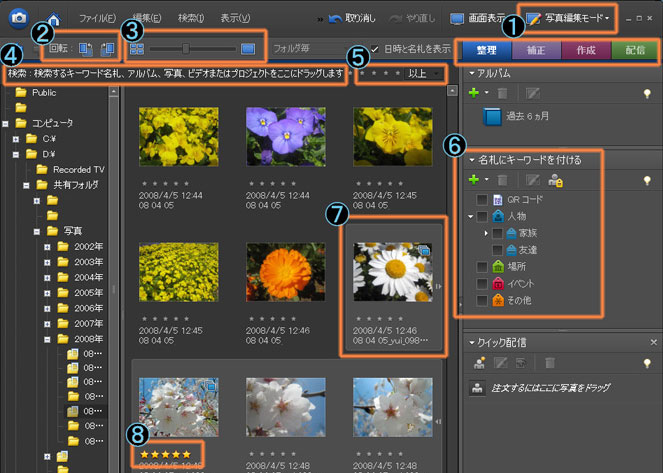 「写真整理モード」には写真を閲覧しやすくするための機能や、沢山の写真の中から写真を検索する色々な機能があります。